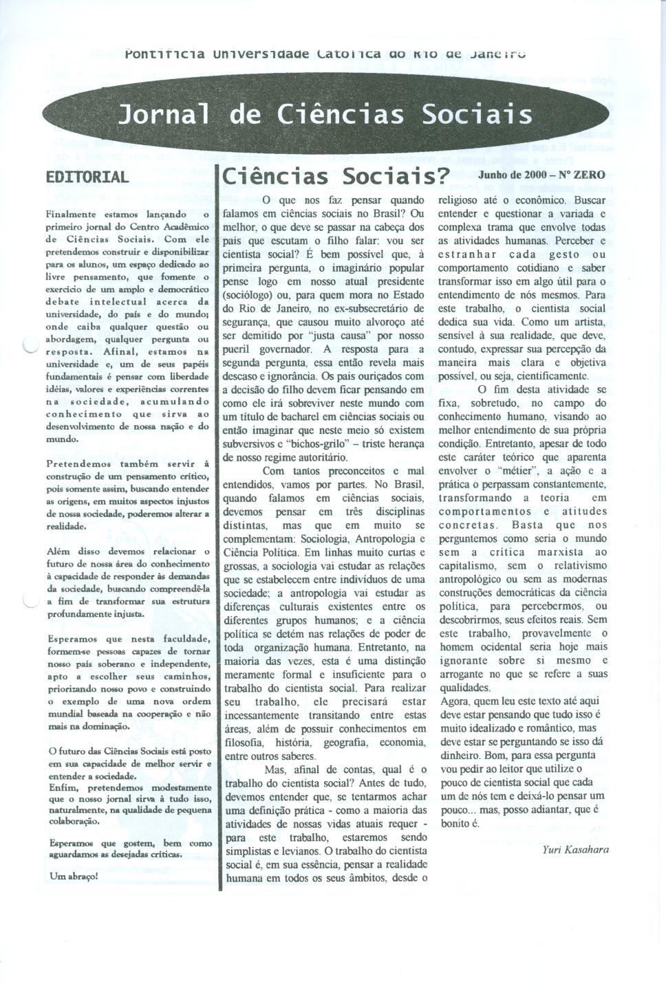 Capa do número zero. Editorial sem assinatura e matéria "Ciências Sociais?", assinada por Yuri Kasahara.