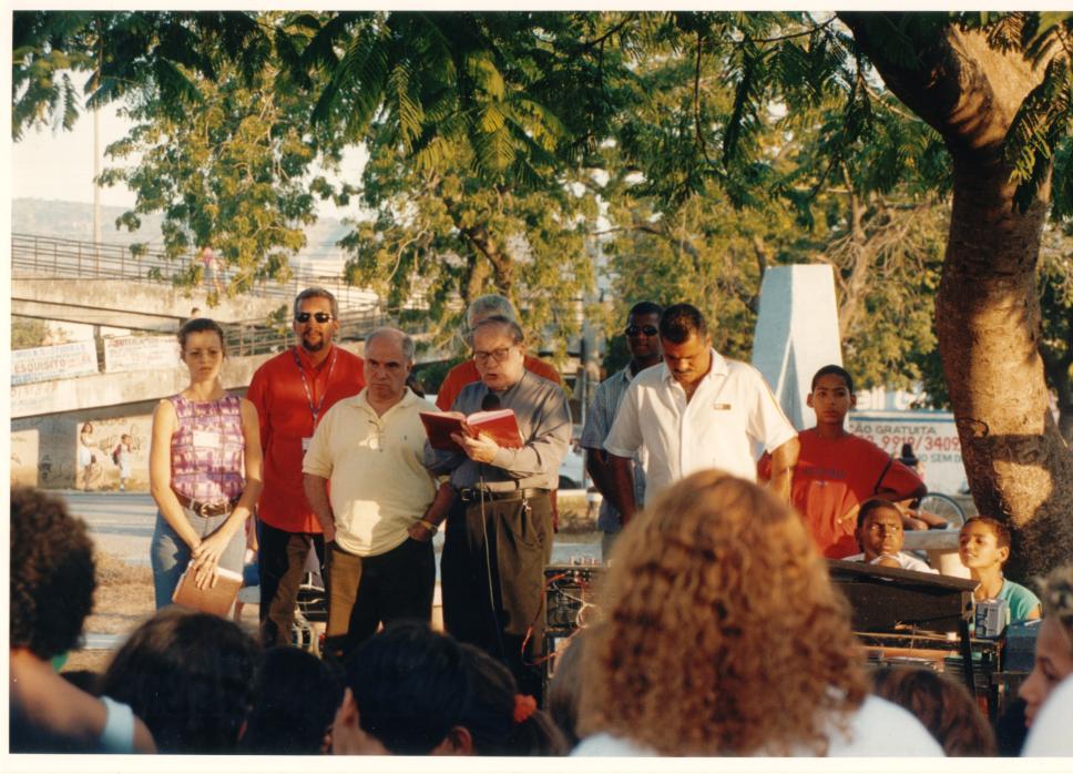Padre Hortal oferece uma bênção em evento em Campo Grande, Rio de Janeiro.