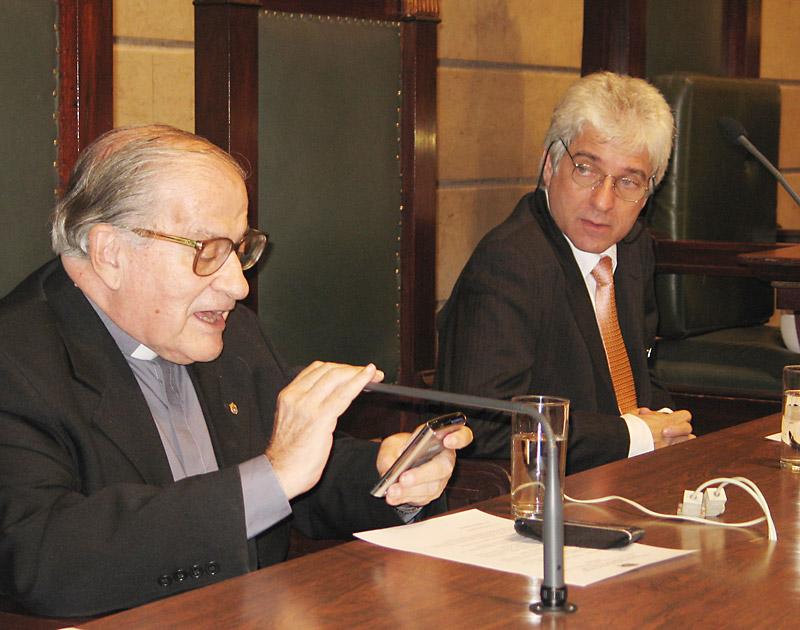 Ato na Hebraica com o presidente da FIERJ. Padre Hortal utiliza um aparelho Palm Pilot.