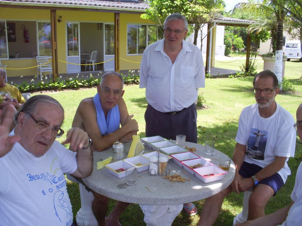 Pe. Hortal e outros professores da PUC-Rio em sítio ou hotel-fazenda.