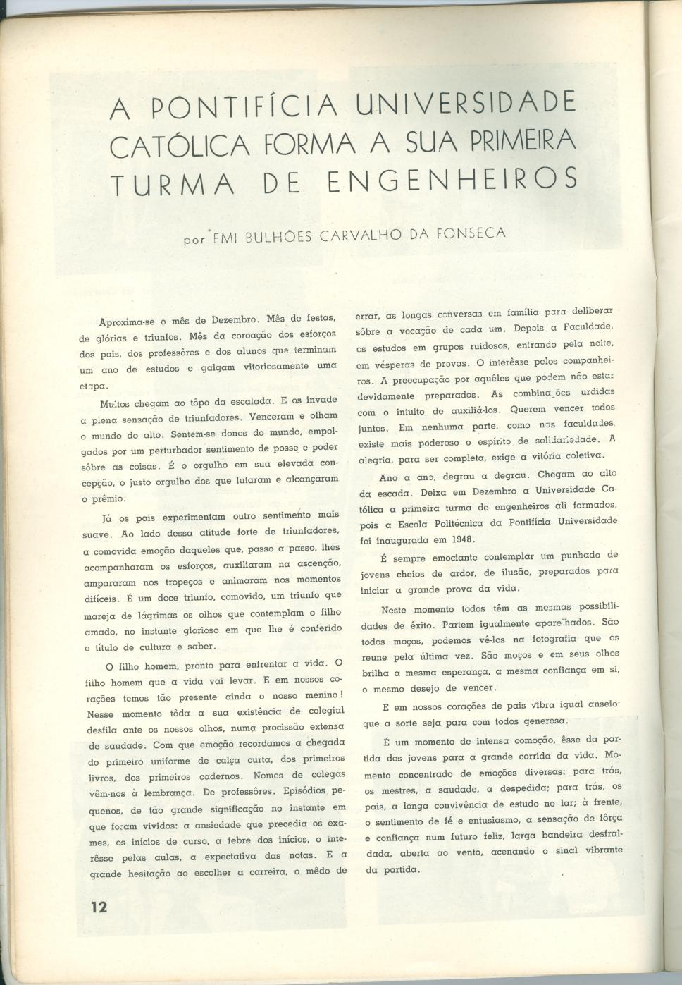 Página 12 - por Emi Bulhões Carvalho da Fonseca, reflexões sobre a graduação da primeira turma de Engenharia.
