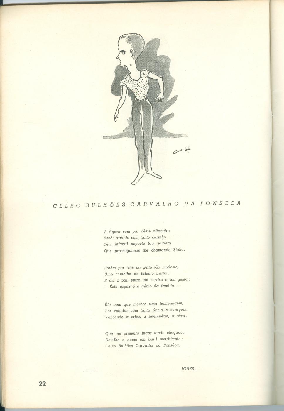 Página 22 - Caricatura de Celso Bulhões Carvalho da Fonseca e poema. Por Jones.