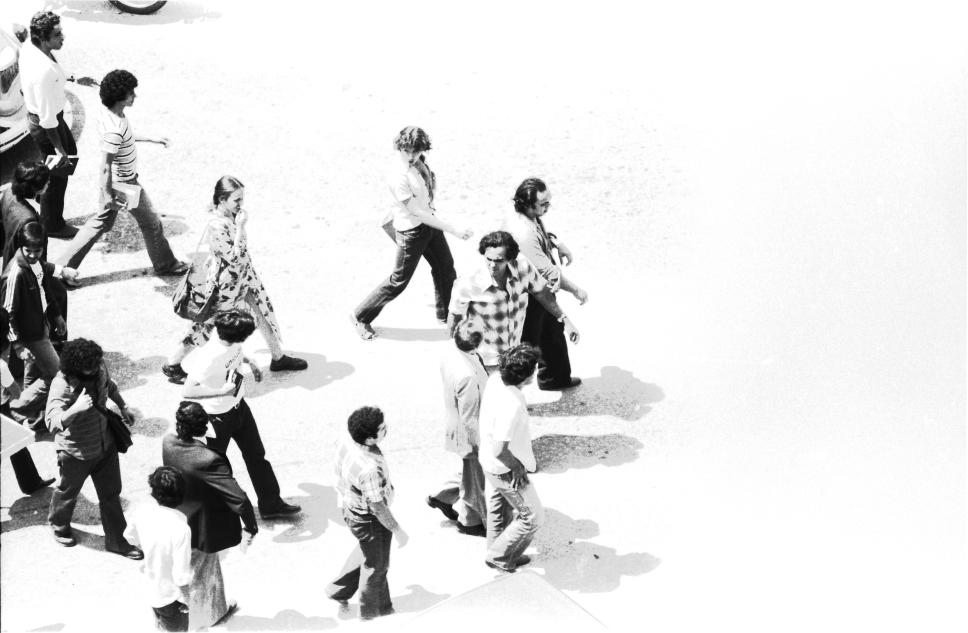 Grupo acompanha a entrada de Miguel Arraes (na foto, do lado direito já dentro da Universidade).