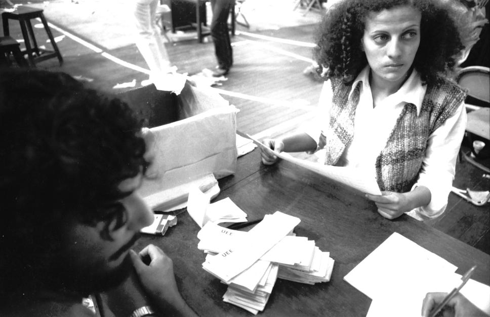 Contagem de votos das eleições estudantis. Uma das mesas apuradoras conta cédulas da votação para a UEE (União Estadual de Estudantes).