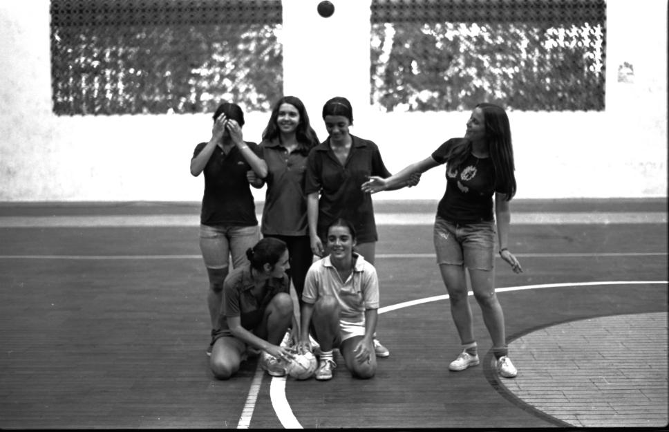 Alunas posam após jogo de futebol de salão.