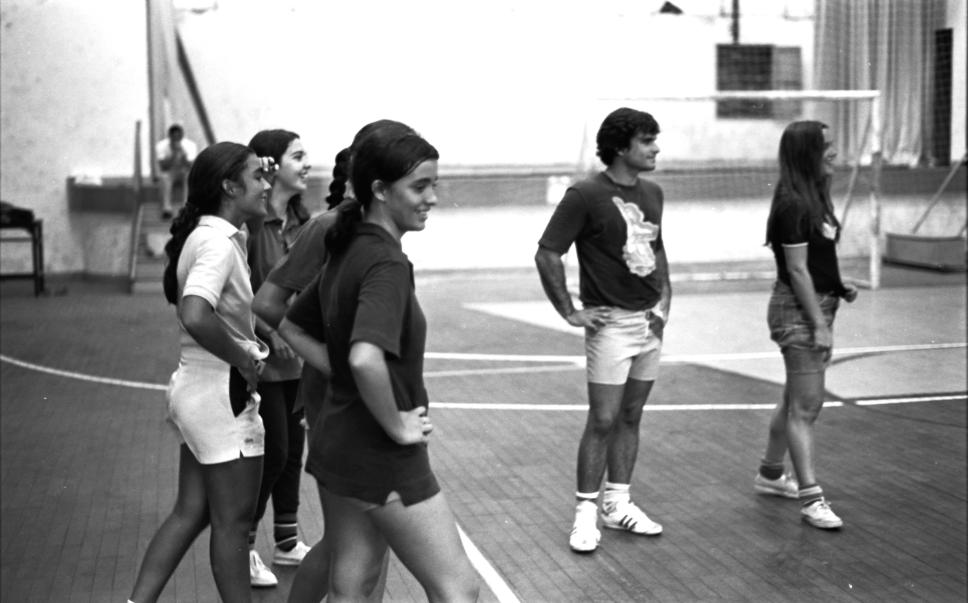 Alunas jogam futebol de salão.