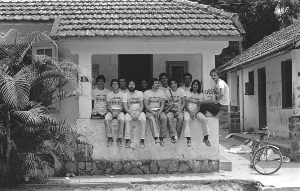 Membros da chapa Unidade para as eleições do DCE, na varanda da casa III da Vila, Diretório Acadêmico Adhemar Fonseca (Engenharia) - DAAF.