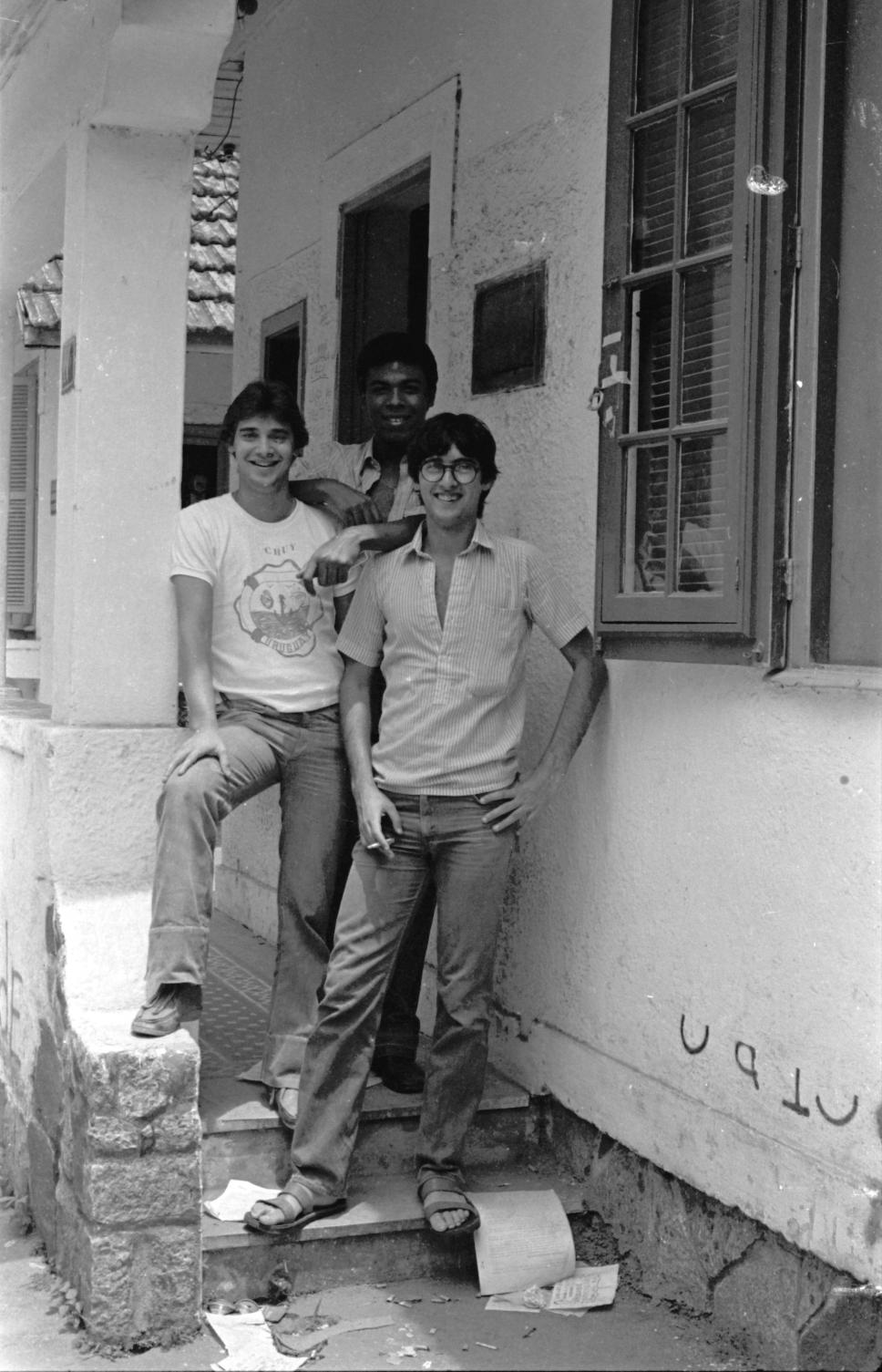 Alunos em frente a uma das casas da Vila.