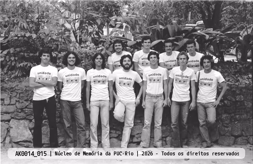 Alunos da chapa Unidade posam para foto no muro dos fundos da Vila dos Diretórios.