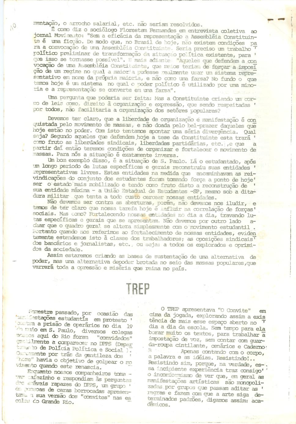 Continuação do debate sobre a Constituinte; TREP - Teatro de Resistência dos Estudantes da PUC. Jornal da chapa Alternativa, do CTC, do movimento estudantil da PUC-Rio, número 03.