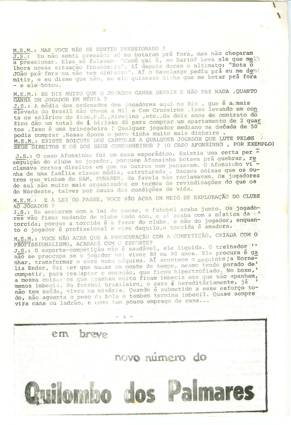 Continuação da entrevista com João Saldanha. Jornal da chapa Alternativa, do CTC, do movimento estudantil da PUC-Rio, sem número.