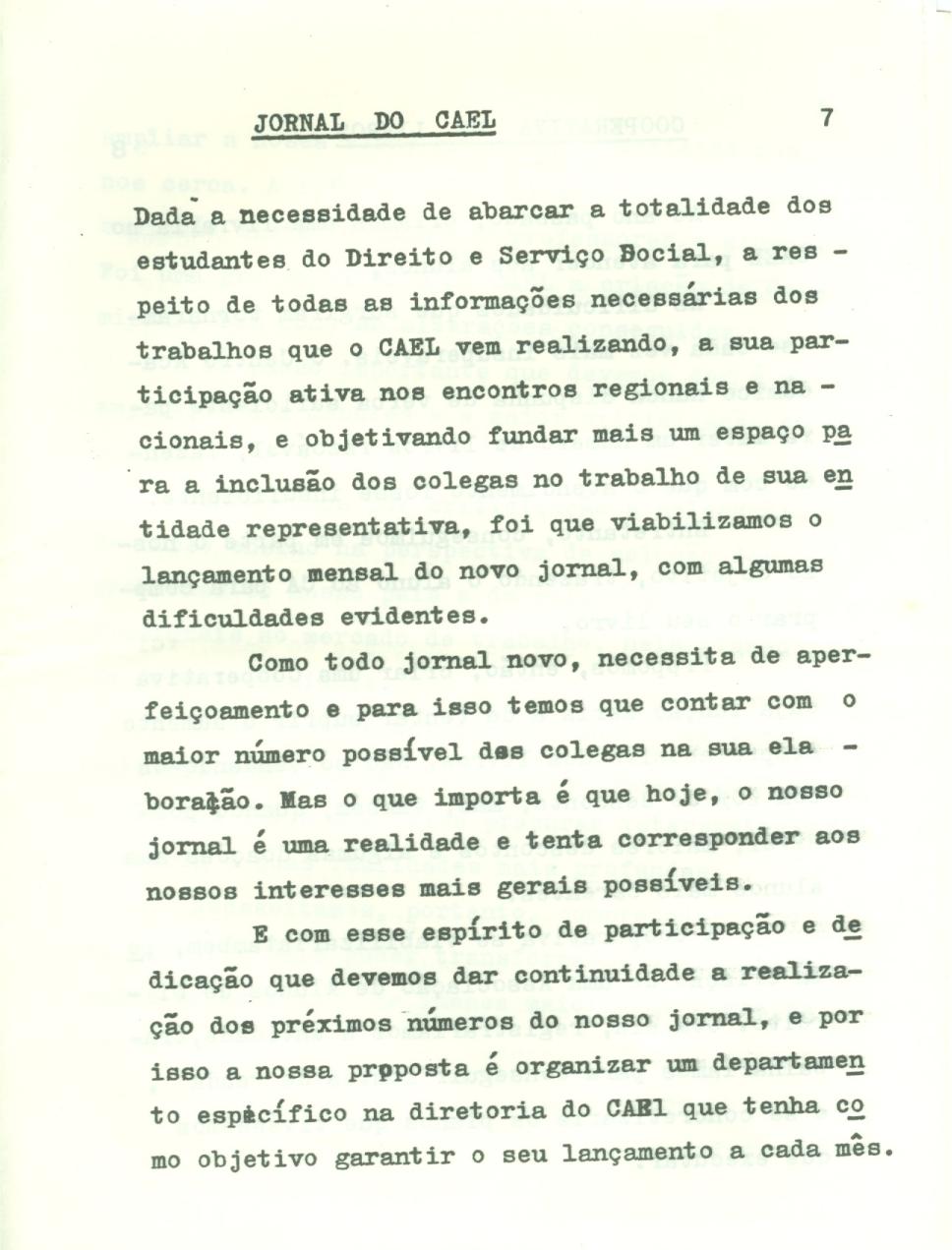 Página 07. Jornal do CAEL. Uma espécie de editorial.
