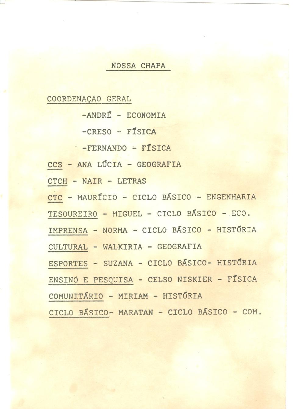 Componentes da Chapa. Programa da chapa Simbora, ao DCE.