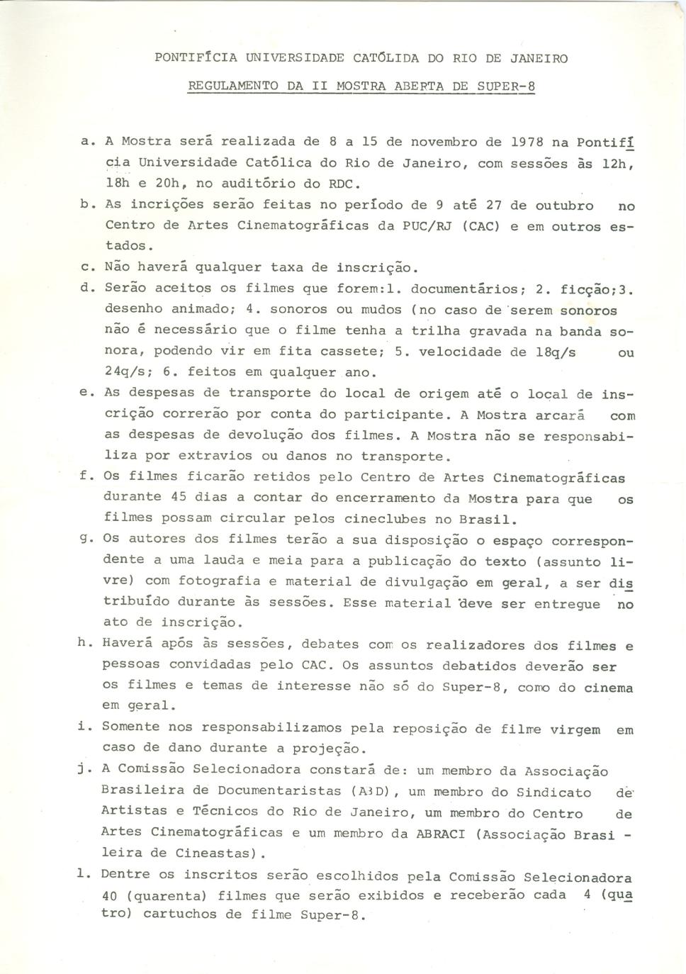 Objetivos e regulamento (pag. 2 de 3) da II Mostra Aberta de Super-8.
