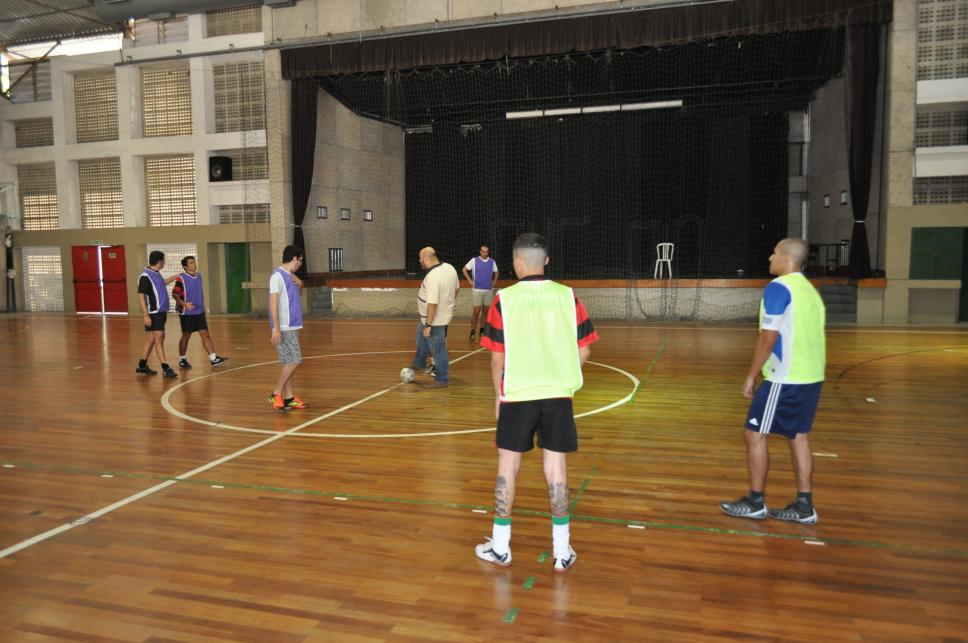 De roxo, da esquerda para a direita: prof. Maurício Parada, prof. Leonardo Affonso de Miranda, Moisés Sant'Anna e prof. Henrique Estrada.