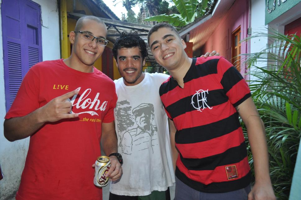 Alunos em confraternização na Vila dos Diretórios após o jogo de futebol de salão.