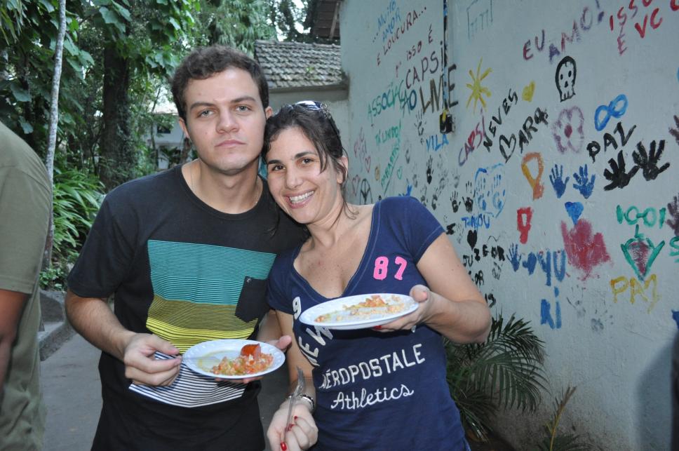 Alunos em confraternização na Vila dos Diretórios após o jogo de futebol de salão.