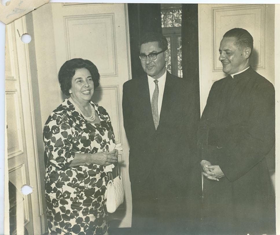 O Reitor pe. Laércio S.J. e a condessa Pereira Carneiro, presidente do Jornal do Brasil e patronesse da PUC-Rio.
