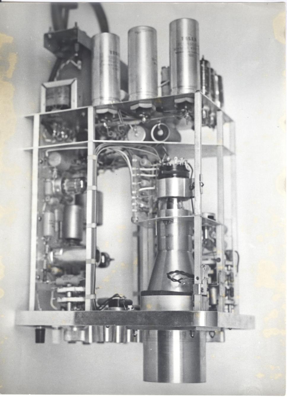Aparelho não identificado, com diversos capacitores e, aparentemente, um canhão de raios.
