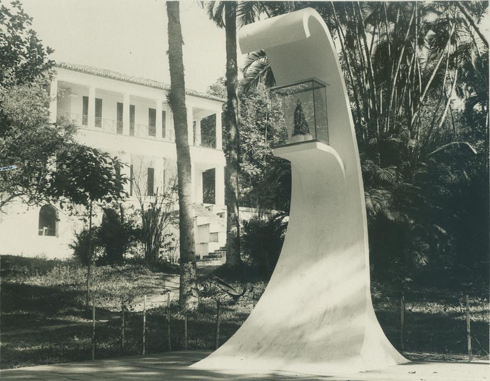 Nicho de Nossa Senhora Aparecida; ao fundo, o Solar Grandjean de Montigny.