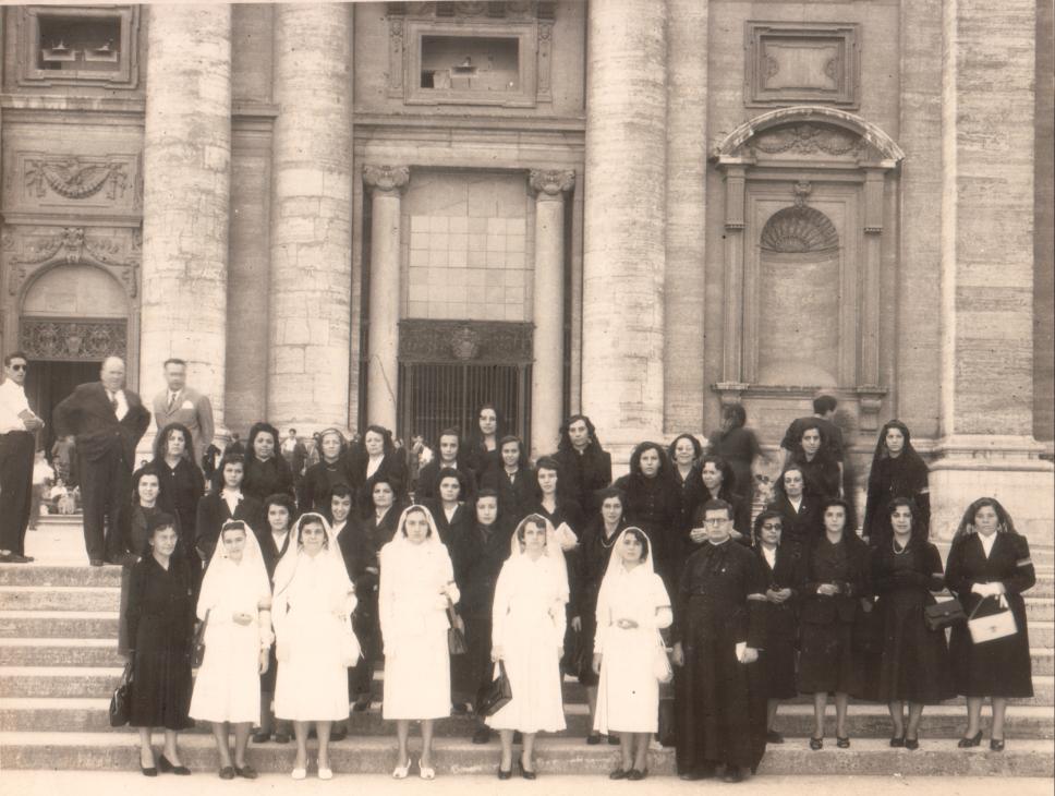 Grupo de peregrinos da Universidade em viagem ao Vaticano no Ano Santo.