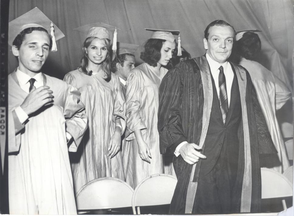 Formatura do curso de Jornalismo, ainda parte da Faculdade de Filosofia, com a presença do prof. Alberto Dines.
