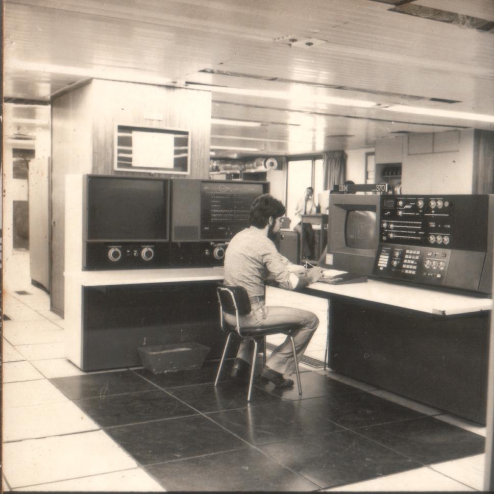 Pessoa opera o computador IBM 370.