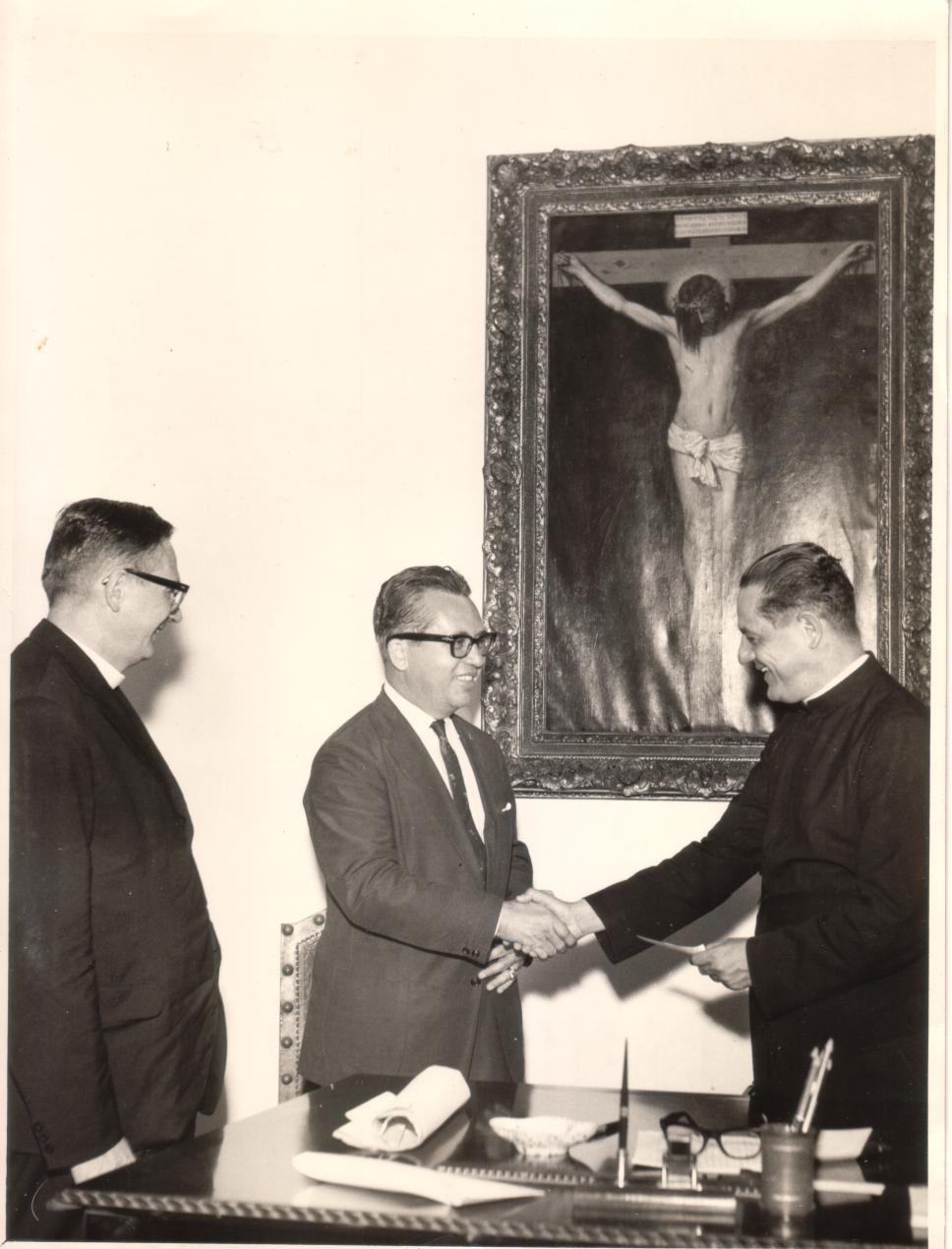 Entrega de doação à PUC-Rio. Pela presença do Pe. Hainberger S.J., talvez seja uma das que possibilitou a construção do edifício do Instituto de Química.
