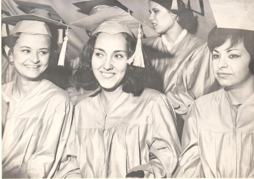 Alunas formandas do curso de Jornalismo posam na cerimônia de Formatura.