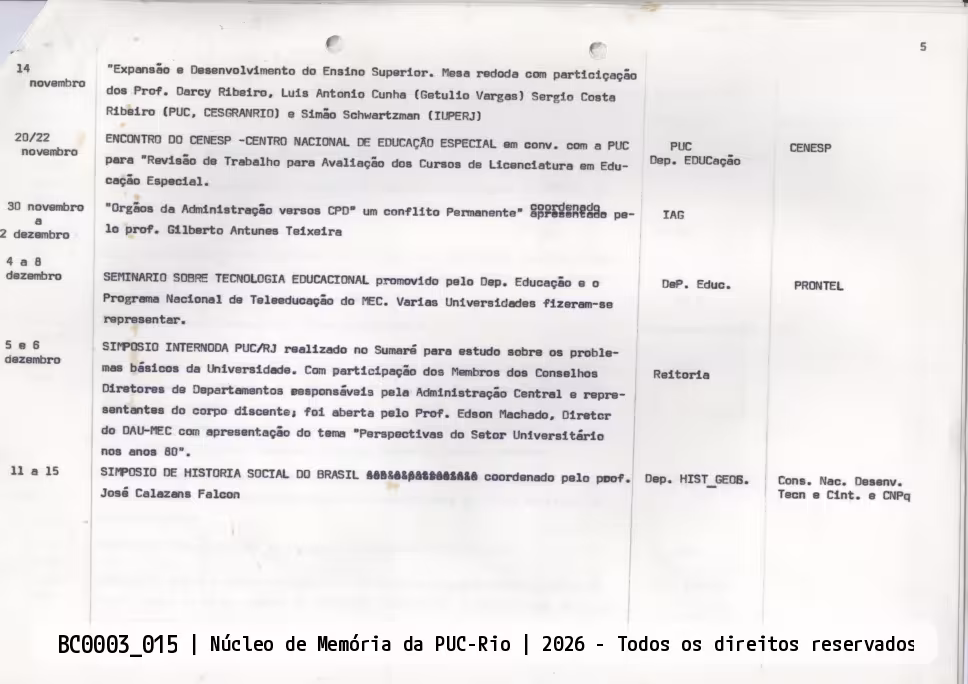 Encontros, seminários, colóquios e outros realizados na PUC-Rio em 1978.