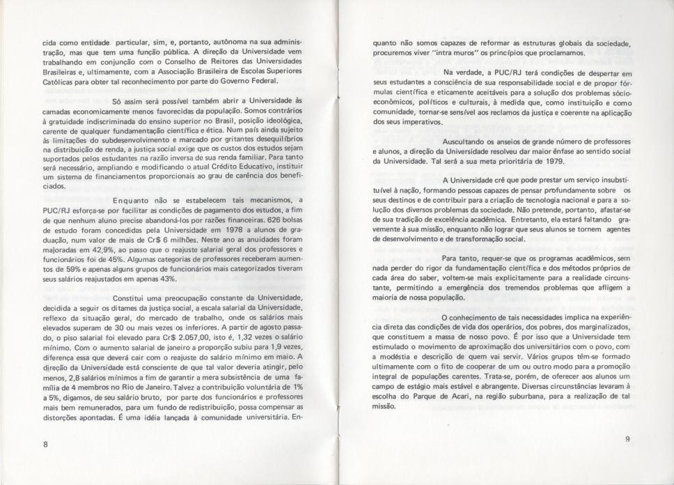 O Relatório apresenta o balanço das atividades acadêmicas da PUC-Rio do ano de 1978. A publicação contém informações do corpo docente e discente, da Associação dos Docentes (ADPUC) e da Associação de Funcionários (AFPUC), do projeto de reformulação da Regulamentação da Carreira Docente e dos convênios estabelecidos com a FUNARTE, FINEP, BNDE, MEC, IPHAN, entre outros. Destaca os projetos, os eventos, as palestras e os seminários realizados em 1978 e traz também dados sobre a situação financeira da Universidade e das bolsas de estudos. O Relatório foi apresentado pelo reitor pe. João Mac Dowell S.J. na abertura do ano acadêmico em 09 de março de 1979.