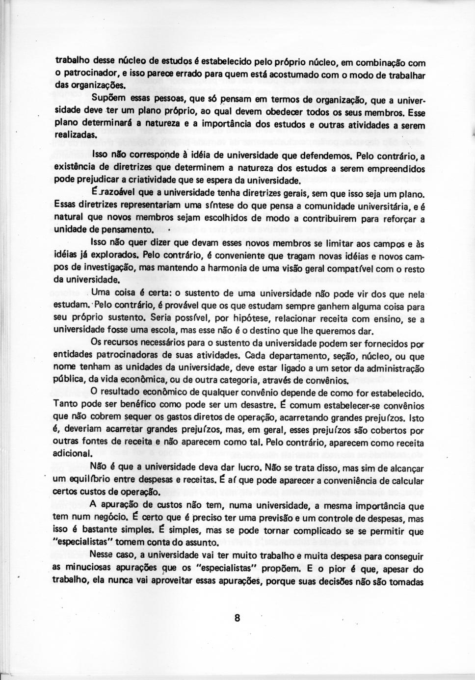 Coleção Acervo do Prof. Paulo Novaes - Vice-reitoria de Desenvolvimento - parte 8 Código exclusivo bc0003_041 Data da criação Ano 1977 Data de criação Sáb, 01/01/1977 - 12:00 Referente a Reitoria Identificação Original s.i. Descrição Aula inaugural 16.03.1977 - p.8