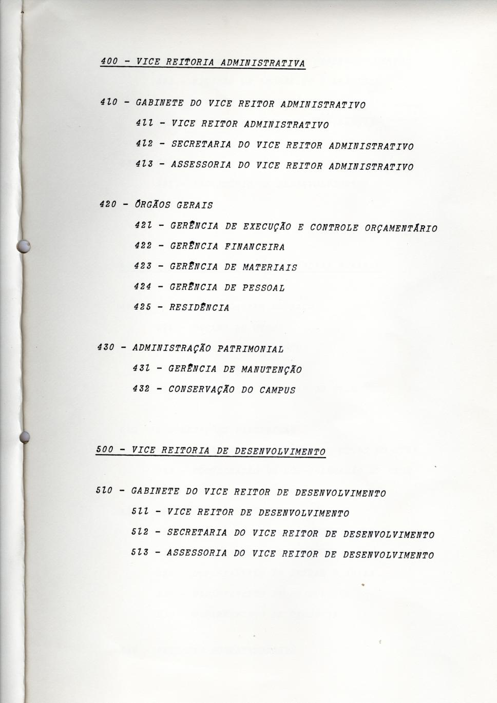 Coleção Acervo do Prof. Paulo Novaes - Vice-reitoria de Desenvolvimento - parte 8 Código exclusivo bc0003_064 Data da criação Ano 1973 Data de criação Seg, 01/01/1973 - 12:00 Referente a Reitoria Identificação Original s.i. Descrição Gerência de execução e controle orçamentário 24.01.1973 - p.4, Código dos órgãos