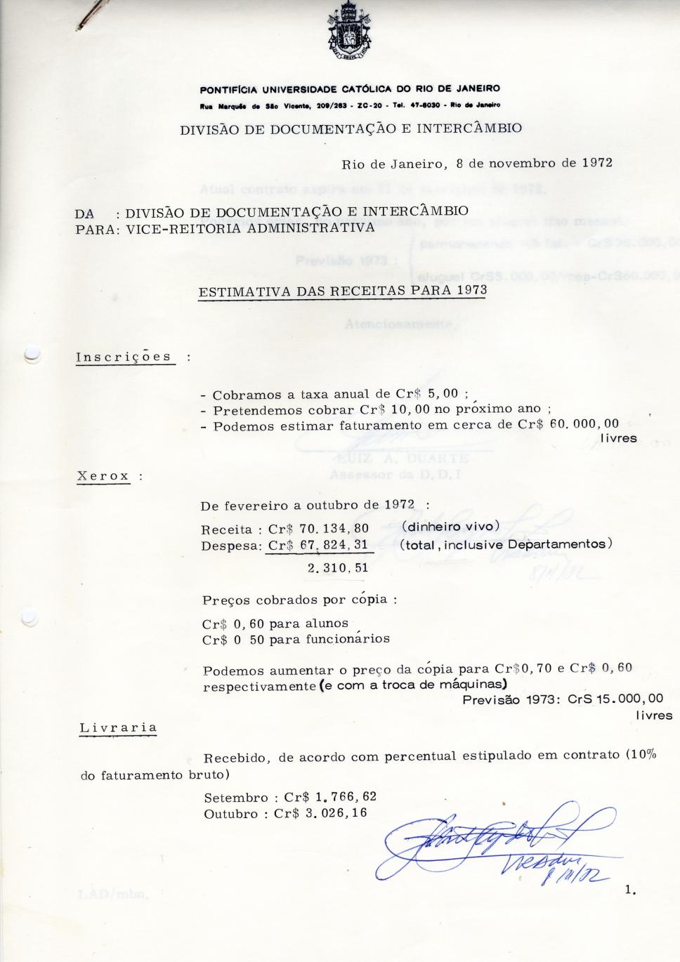 Página 1. Relatório para a Vice-Reitoria Administrativa. Receitas previstas com Inscrições, Xerox e Livraria.