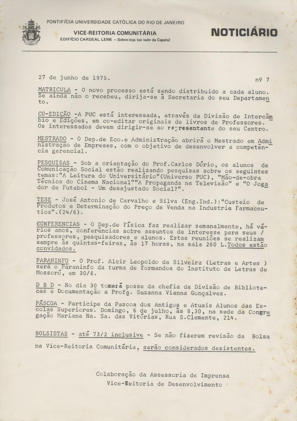 Noticiário 27.06.1975 número 7