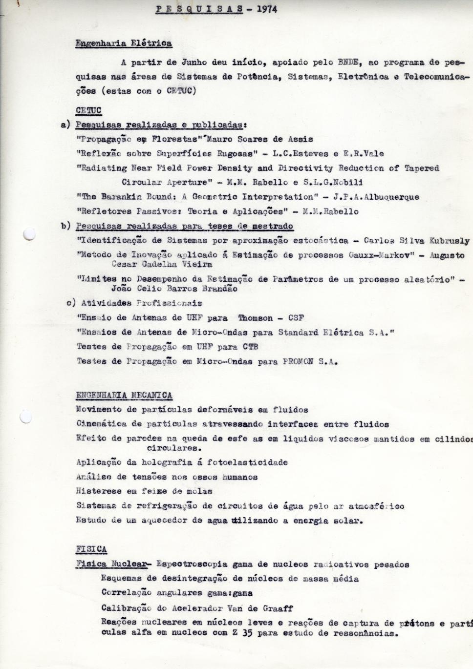Coleção Acervo do Prof. Paulo Novaes - Vice-reitoria de Desenvolvimento - parte 8 Código exclusivo bc0003_084 Data da criação Ano 1974 Data de criação Ter, 01/01/1974 - 12:00 Referente a Reitoria Identificação Original s.i. Descrição Pesquisas 1974 - p.1