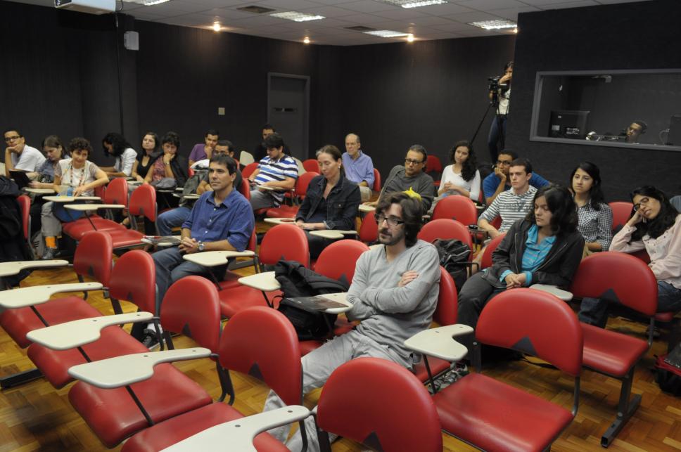 Plateia durante os comentários da Profa. Margarida de Souza Neves (HIS) no lançamento do filme Histórias que só existem quando contadas.