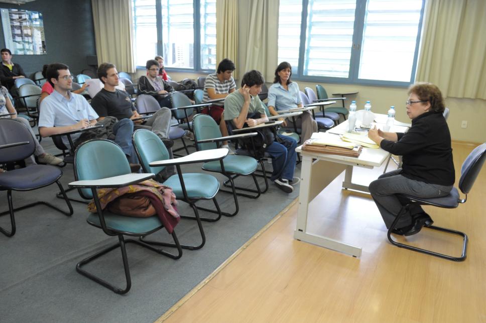Profª. Maria Regina Soares (IESP/UERJ) sentada na mesa dos professores; 1ª fila da dir. para esq.: profa. Maria Elisa Noronha de Sá Mäder (HIS)