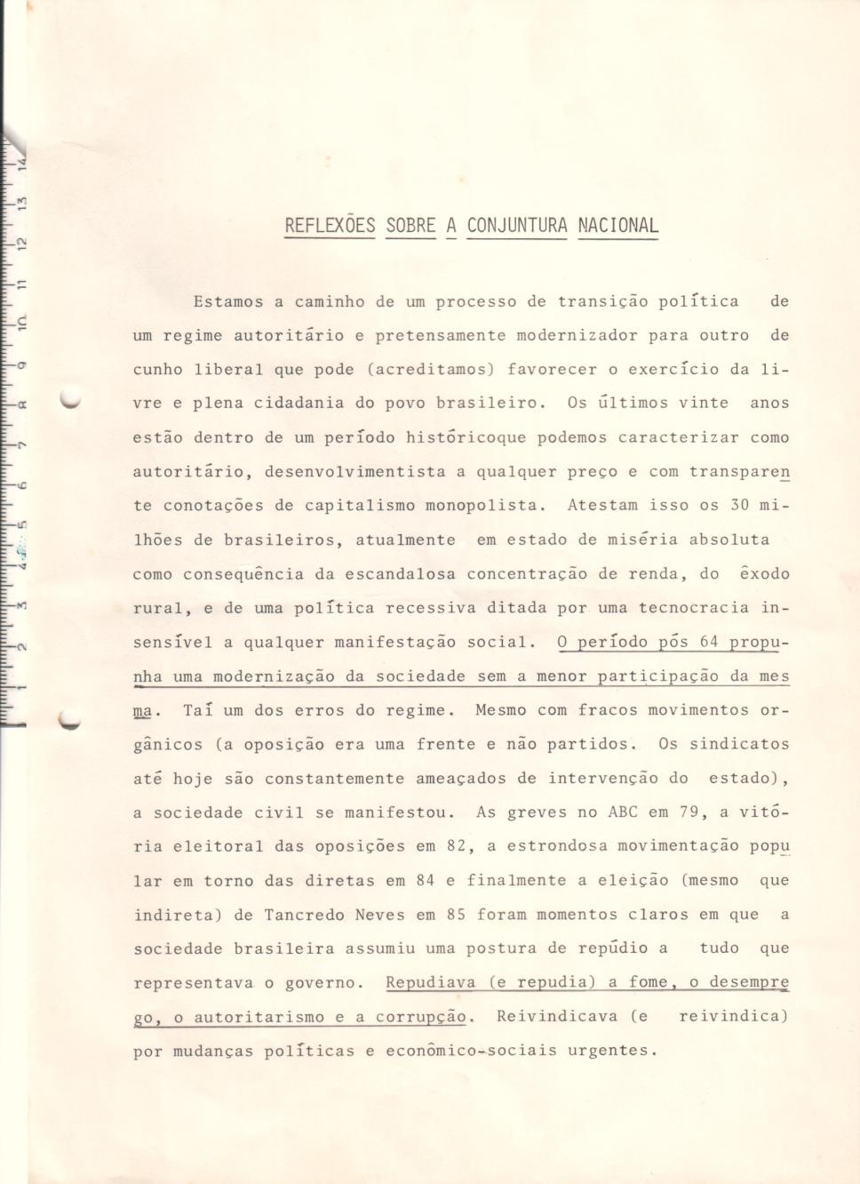 Reflexões sobre a conjuntura nacional