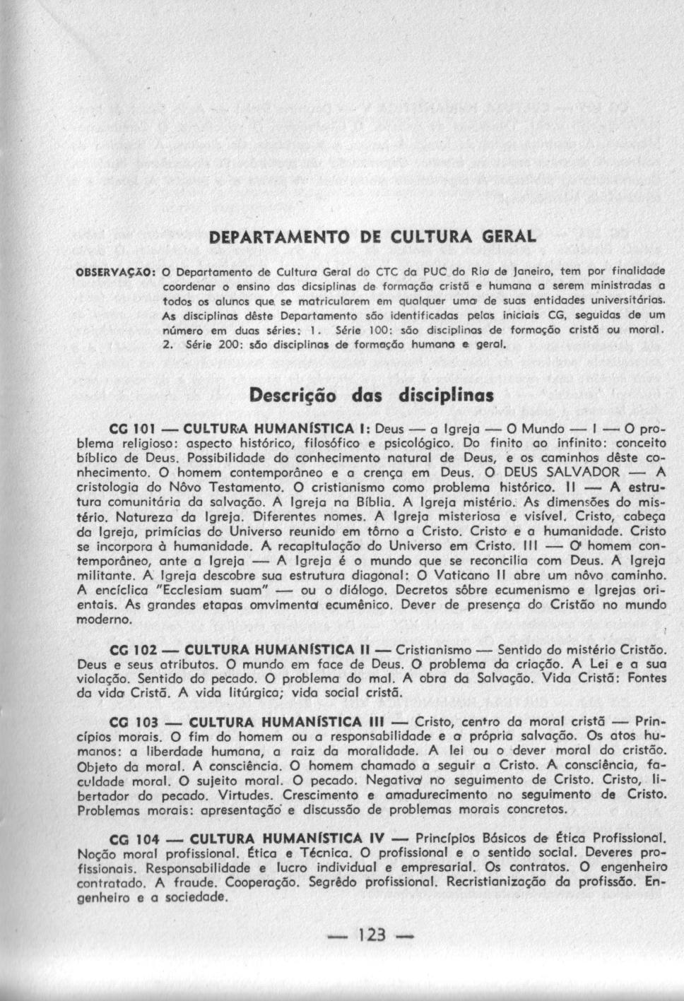 Página 123 do Catálogo Escolar do Centro Técnico Científico. Departamento de Cultura Geral.