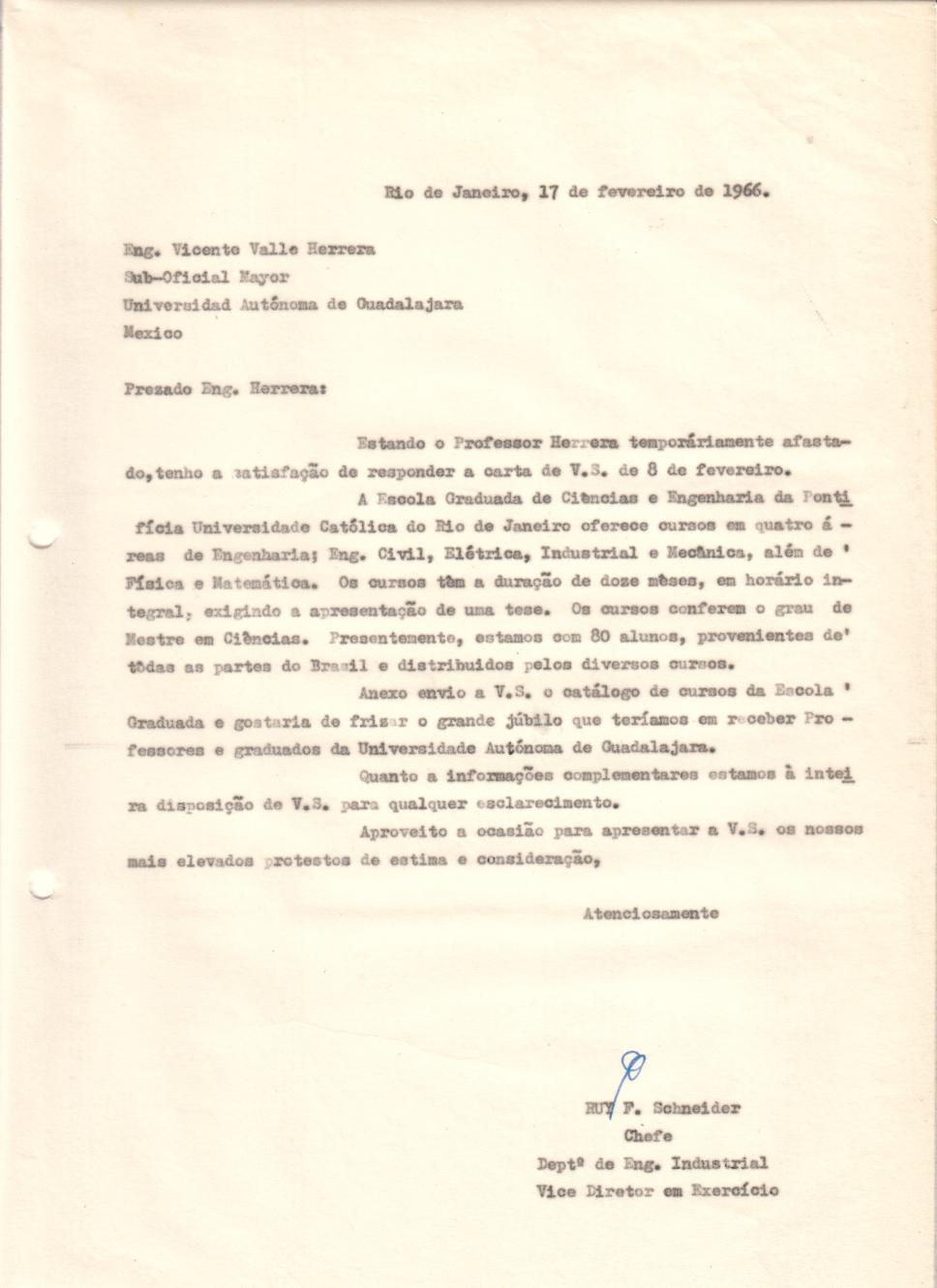 Correspondência do prof. Ruy Schneider (IND) para Vicente Herrera (Universidad Autônoma de Guadalajara).