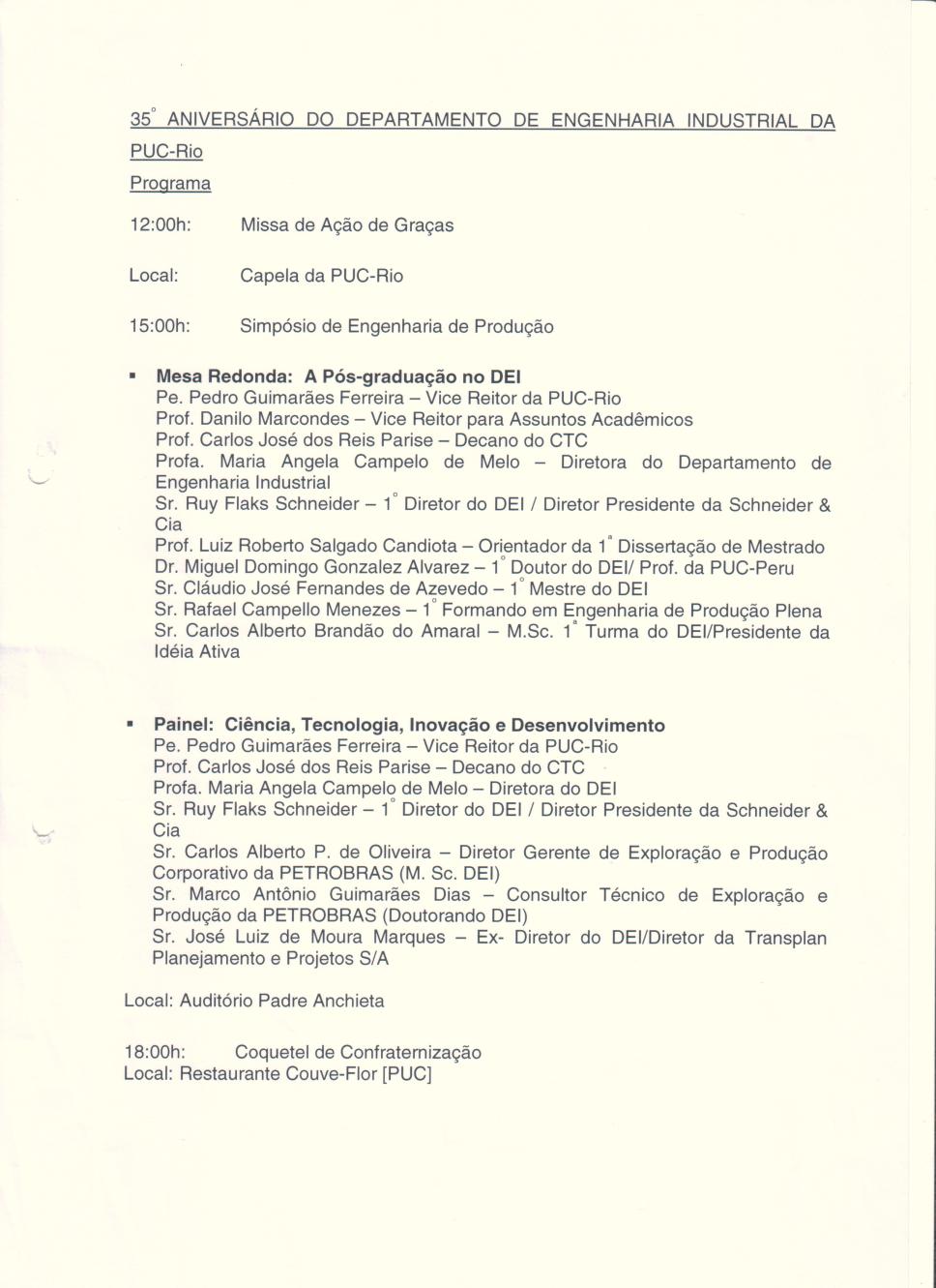 35 aniversário do Departamento de Engenharia Industrial da PUC-Rio