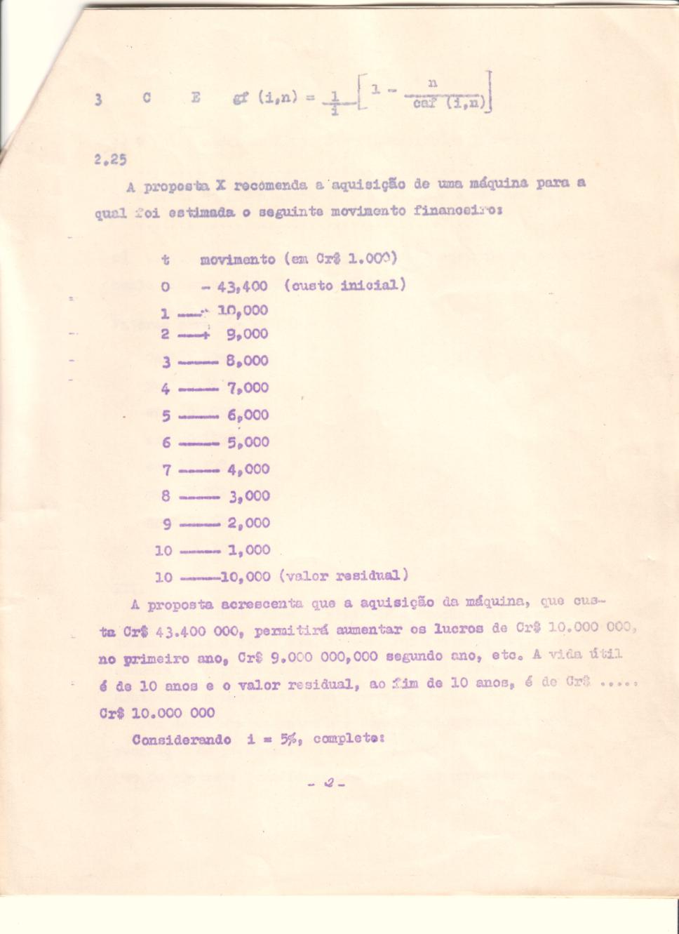 Página 02 da prova de Economia da Engenharia