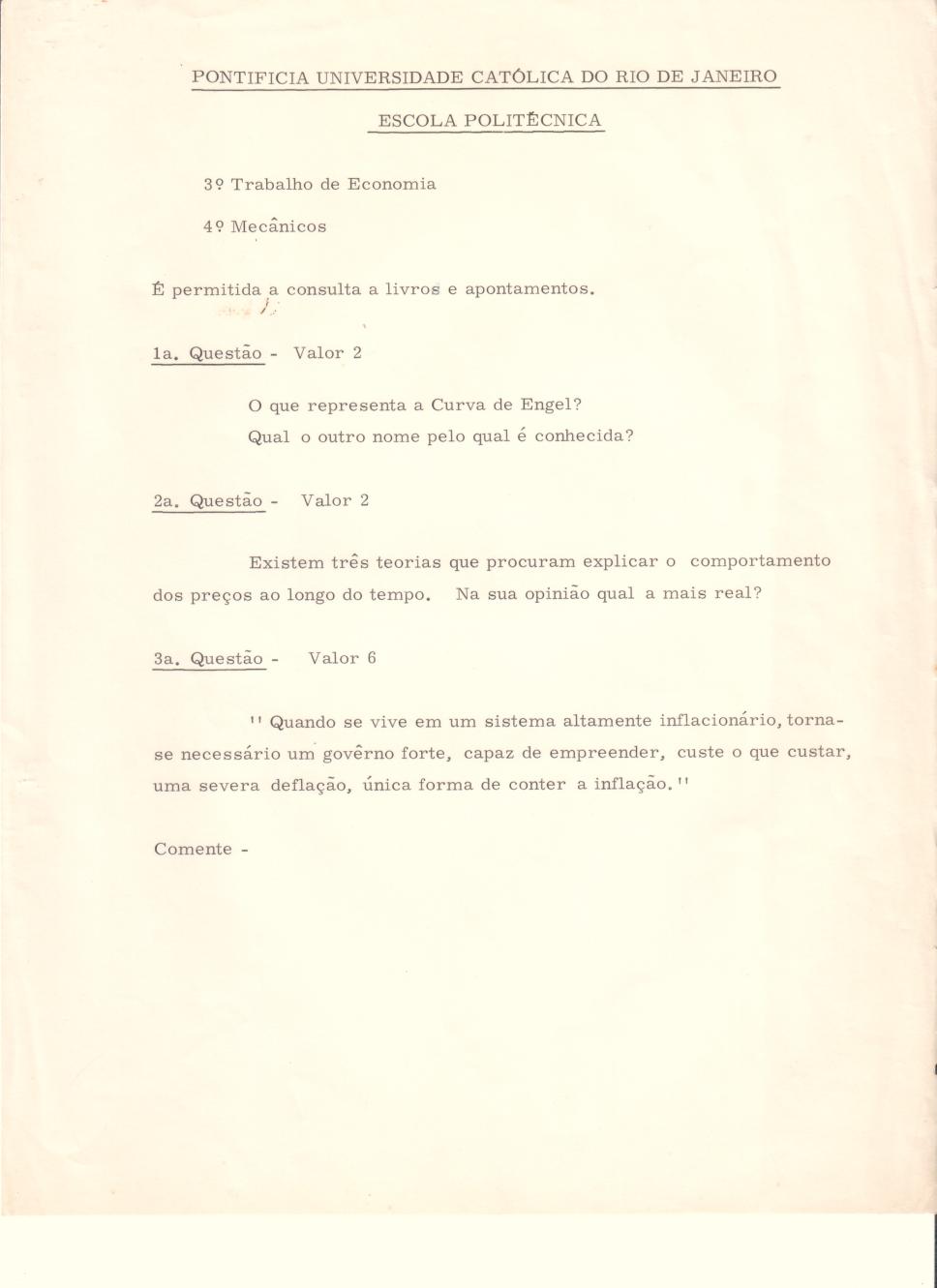 Trabalho com consulta de Economia da Escola Politécnica, para "4o Mecânicos".