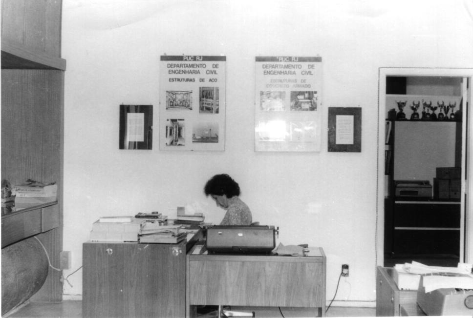 Funcionária trabalha na secretaria do Departamento de Engenharia Civil.