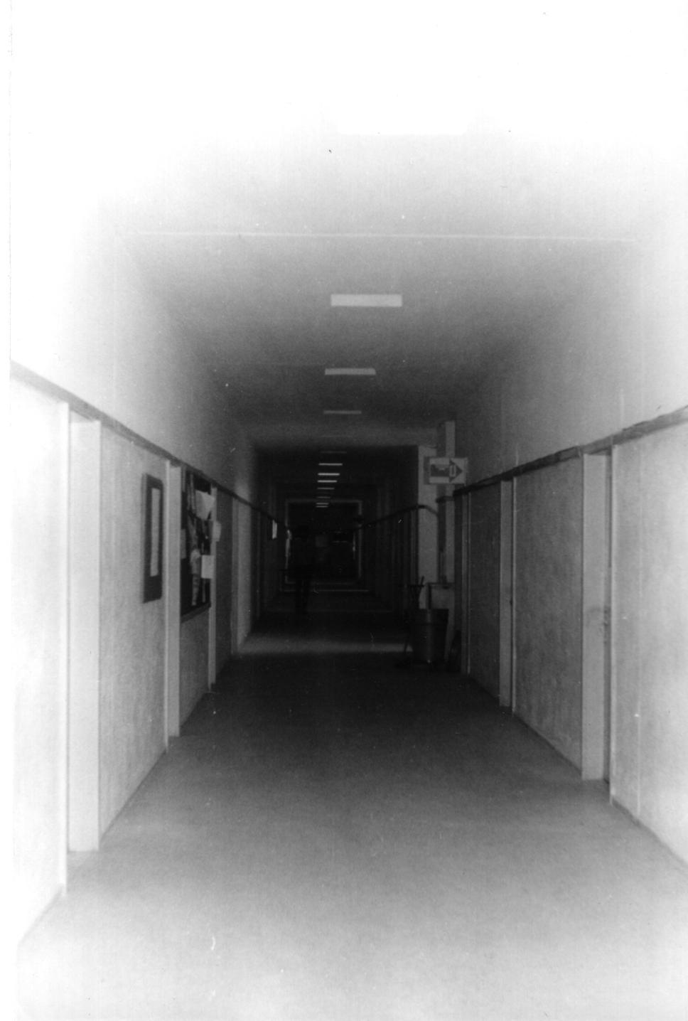Pode-se perceber a presença de um homem caminhando no corredor.