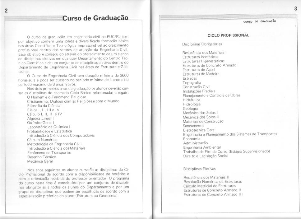 Catálogo Engenharia Civil na PUC-RJ. Curso de graduação, disciplinas do Ciclo Básico e do Ciclo Profissional.