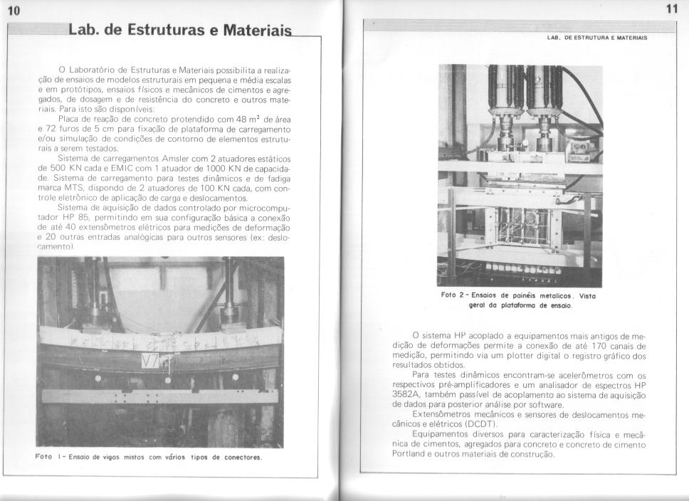 Contém fotografias do Laboratório de Estruturas e Materiais.
