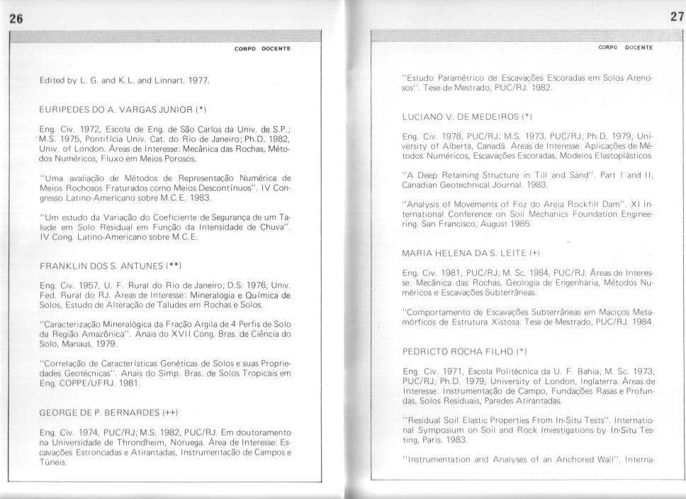 Catálogo Engenharia Civil na PUC-RJ. Corpo Docente e Publicações Selecionadas. Geotecnia.
