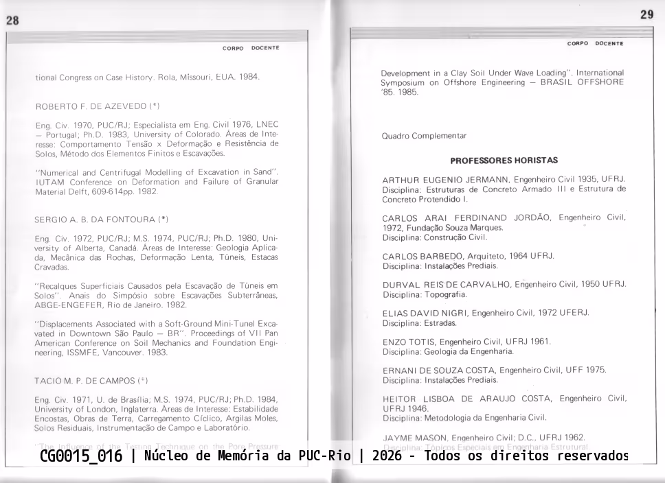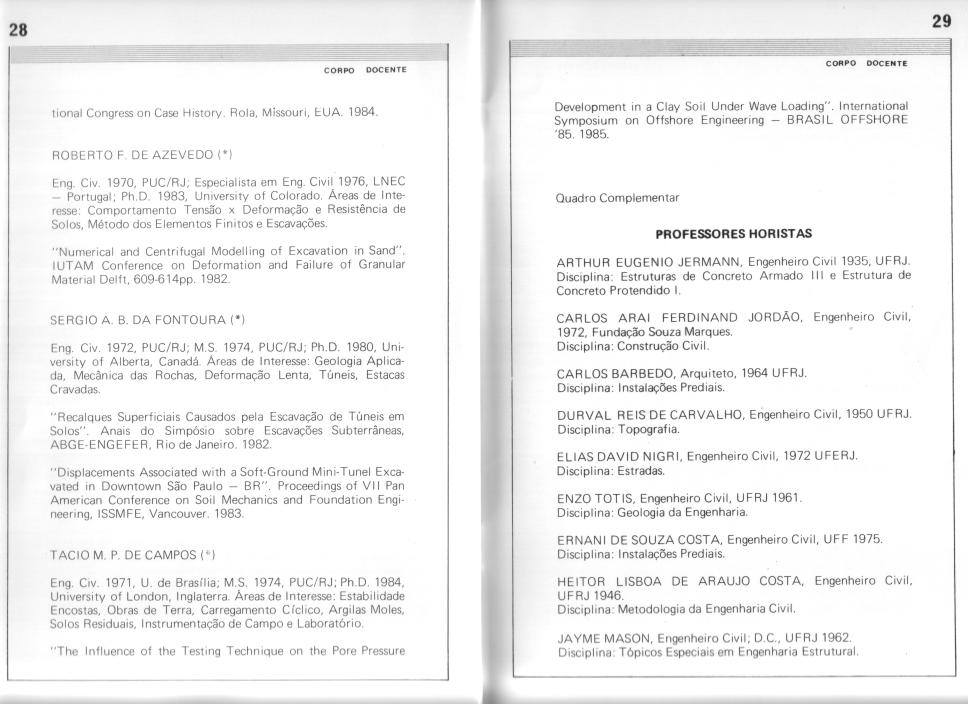 Catálogo Engenharia Civil na PUC-RJ. Corpo Docente e Publicações Selecionadas. Geotecnia. Lista de professores horistas do Departamento.